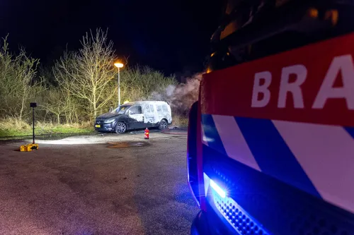parkeerterrein van het restaurant stond een bedrijfsbusje in brand.