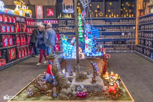 Het moet een enorm werk zijn om zo'n gigantisch Kerstdecor op te bouwen, vorm te geven en -zeker zo belangrijk- ieder jaar weer met een verrassende nieuwe setting te komen. In elk geval helpen bijvoorbeeld de fabrikanten van miniatuur kerstdorpen mee, want ik ontdekte dit jaar zelfs kerstminiaturen van de Efteling. Ik sloeg de plank dus niet mis toen ik sprak over 'sprookjesachtig'. Wellicht bestaan ze al langer hoor die miniatuur Eftelinghuisjes en -figuren, maar ik beleefde zelf dit jaar de premiere! (Hieronder Langnek)