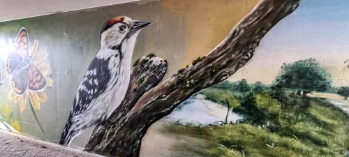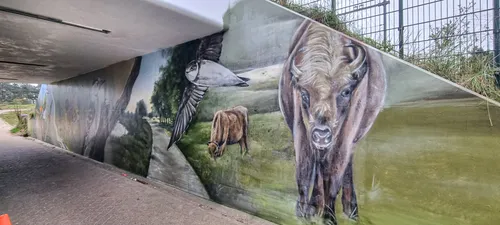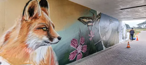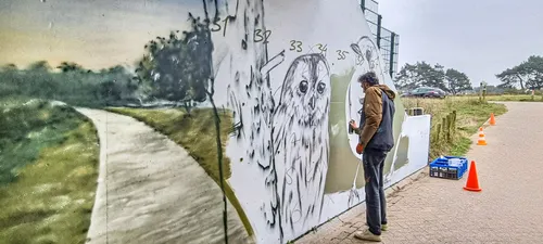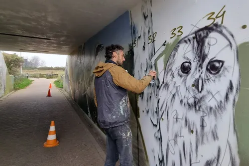 In opdracht van PWN voorziet hij de wanden van de tunnel van muurschilderingen, waarin een duinlandschap tot leven komt met vogels,