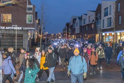 vormden de wandelaars een feestelijke lichtjesslinger die vanaf het eind van de