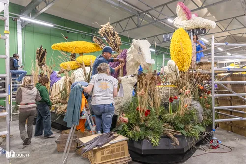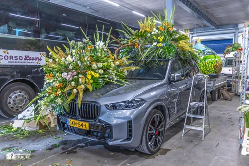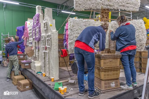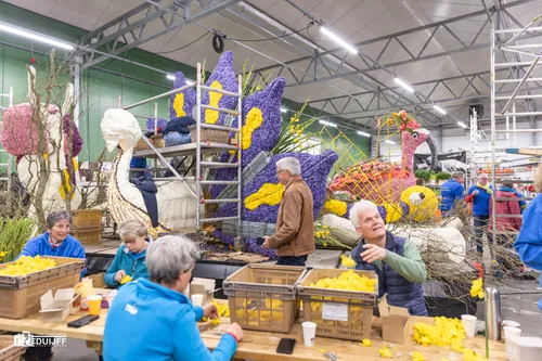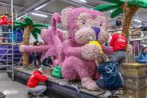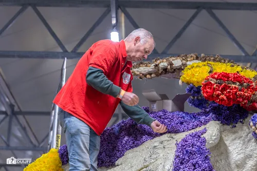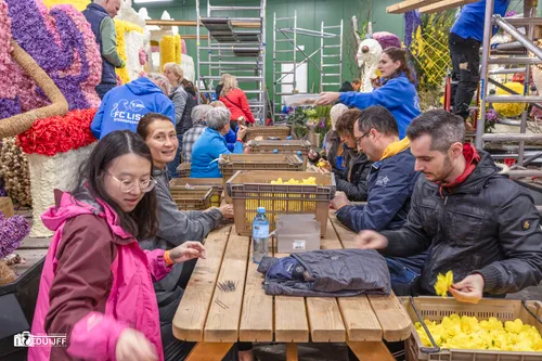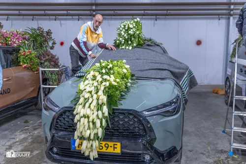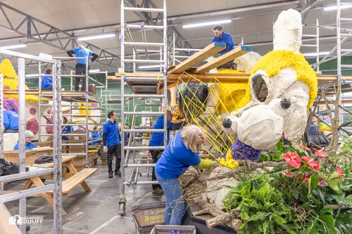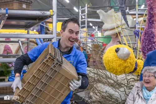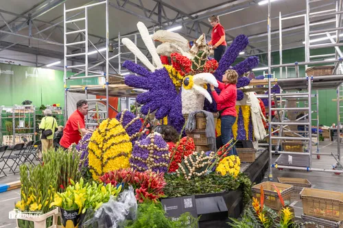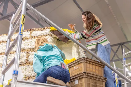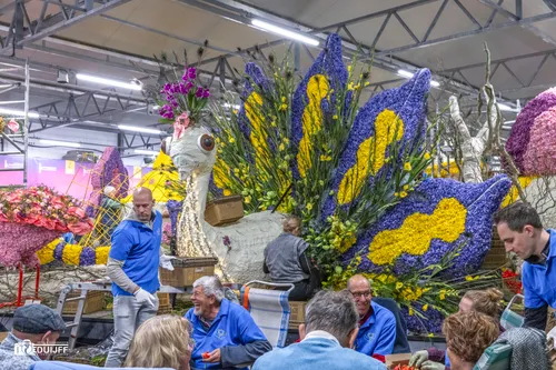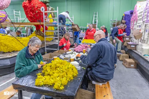 Noordwijkerhout - Het blijft jaarlijks een creatieve- en verbindende belevenis, het steken van de vele kleurrijke hyacinten op de Corso-praalwagens, die zaterdag 12 april vanuit de bollenstreek de lange route van Noordwijk naar Haarlem afleggen.
