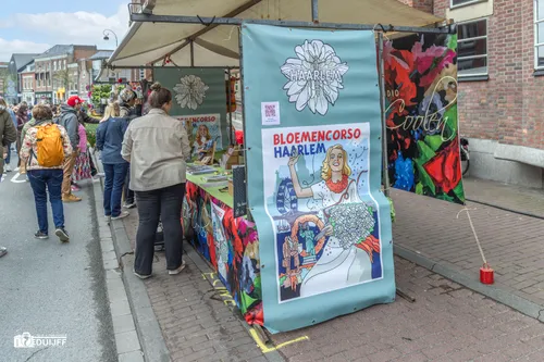 Het was dus pittig druk en dat was mede te danken aan prachtig weer. Behalve een groot aantal corso-praalwagens waren ook een grote hoeveelheid marktkramen opgesteld, waar men uiteraard heerlijke hapjes en drankjes kon kopen, maar waar je bijvoorbeeld ook mooie ansichtkaarten kon kopen (Kaartenmakers Haarlem). Er was vrolijke muziek verzorgd door blaaskapel 'De Muggenblazers', een draaiorgel zorgde voor blije deuntjes, maar vooral de bloemenpracht van de praalwagens zorgden voor een happy feeling.