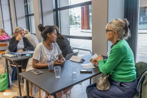een match-making evenement, waarbij de studenten en vrijwilligers op