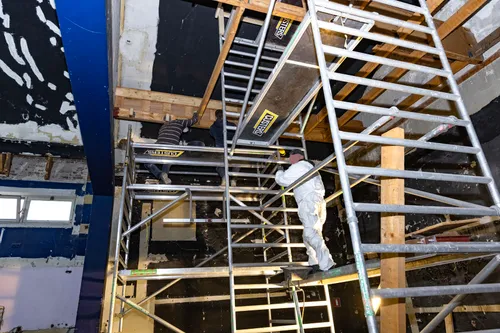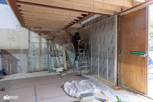 Hieronder een aantal afbeeldingen die een beeld geven omtrent de voortgang van de renovatiewerkzaamheden, waarvan ondermeer zorgvuldige isolatie een belangrijk aspect is.