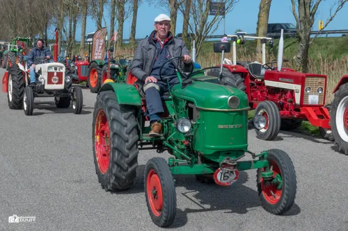Aan het einde van de middag keerde de stoet terug naar Vijfhuizen, waar een geslaagde dag werd afgesloten met een warme snack voor iedereen. De trekkertocht liet opnieuw zien dat historisch erfgoed niet alleen bewaard blijft in musea, maar juist ook tot zijn recht komt wanneer het in beweging wordt gebracht — zij het in een tempo dat ruimte laat voor aandacht en waardering.
