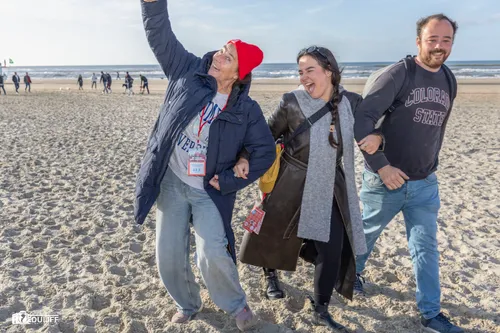Lopers vanuit Katwijk massaal het strand op