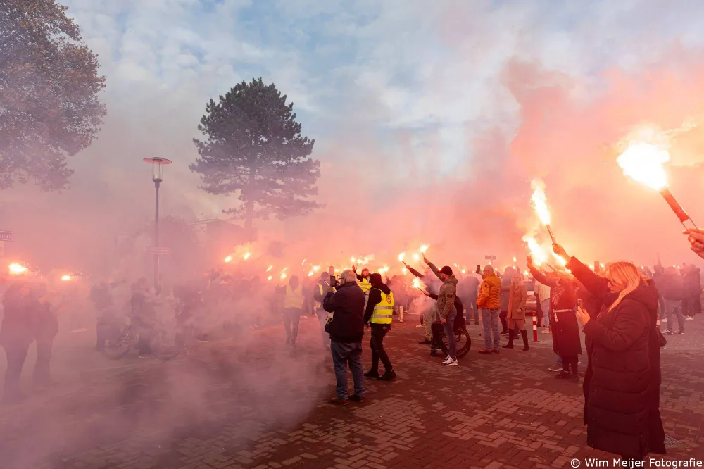De aankomst van de stoet bij Westerveld luidde een indrukwekkend schouwspel op met minutenlang durend vuurwerk en met het licht en de rook van honderden fakkels, afgesloten met een collectief applaus.
