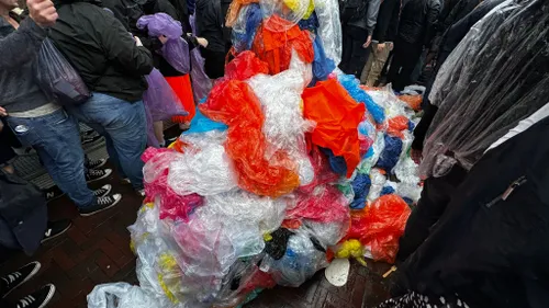 overigens niet met poncho in mochten, met een berg plastic voor het station als