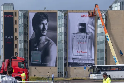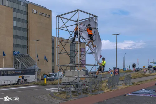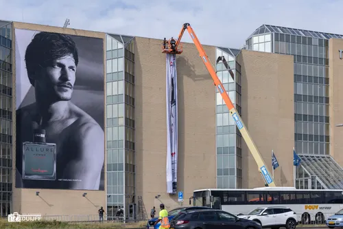 Beelden van de formule 1 race gaan straks weer de hele wereld over, maar ook van de Zandvoortse infrastructuur en van nabij het circuit gelegen gebouwen. Dat maakt dat bij voorbeeld grote (internationale) bedrijven geïnteresseerd zijn in het aanbrengen van mega reclame-objecten. Hieronder in de Burgemeester van Alphenstraat op hotel NH een aardig voorbeeld. Kost een paar centen, maar dan heb je ook iets van allure...